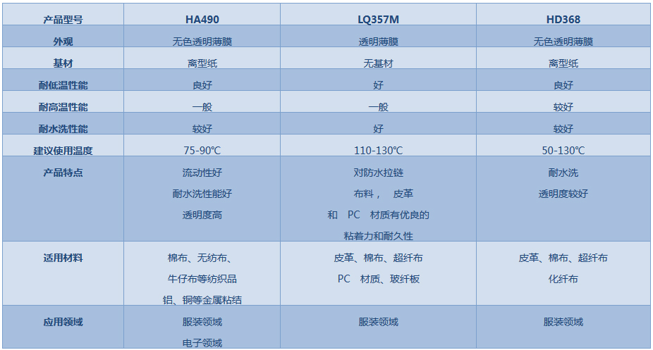 1、應用于各種布類棉、尼龍、滌綸、混紡等相粘;